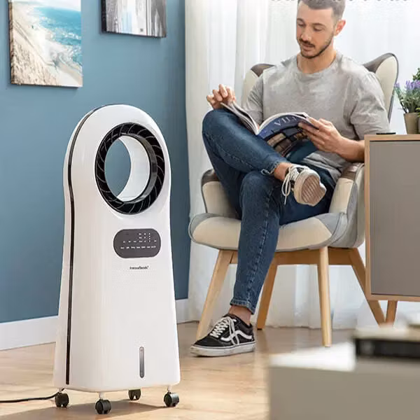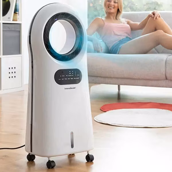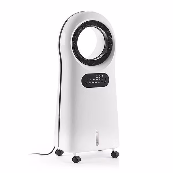Bladlös luftkonditionering Pro är den ultimata lösningen för att hålla ditt hem kyligt och fräscht. Med sin innovativa bladlösa design, aerodynamiska teknik och joniseringsfunktion som drar till sig smuts och släpper ut ren luft, är detta den optimala lösningen för att uppnå en ren och frisk miljö. Den har en tystgående motor (≤55 dB) och 360° luftspridare som ger ett jämnt och effektivt flöde av luft. Den innehåller även en pekskärmspanel, fjärrkontroll, timer (upp till 8 timmar), 3 hastighetsinställningar (låg/medel/hög) och 3 ventilationsinställningar: normal (kontinuerlig luft), naturlig (naturlig fläkt) och natt (mjuk fläkt).