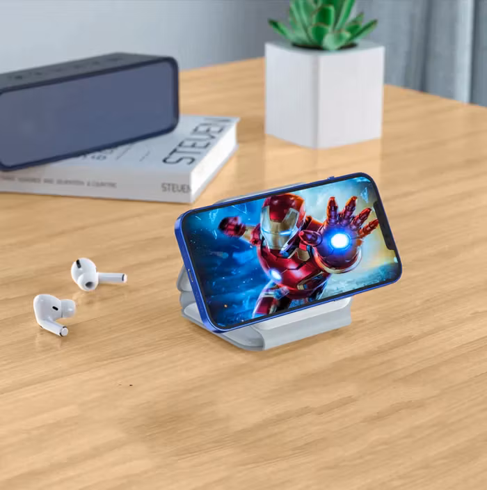 Die kabellose 3-in-1-Ladestation ist die beste Lösung, um dein Smartphone, deine Uhr und deine Kopfhörer gleichzeitig aufzuladen. Du kannst sogar ein zusätzliches Telefon anstelle der Kopfhörer aufladen. Dank dieser Lösung musst du nie wieder Geld für mehrere zusätzliche Ladegeräte und Adapter ausgeben.
