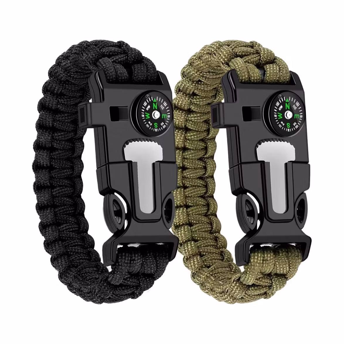 Strapazierfähiges, multifunktionales Armband mit integriertem Feuerstahl, Kompass und Pfeife.