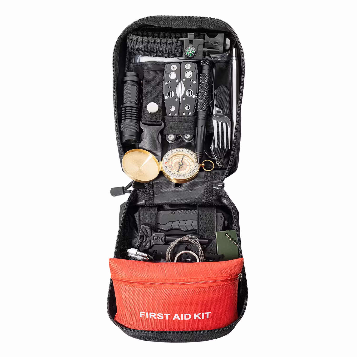 • Überlebensarmband mit Kompass, Pfeife und Feuerstahl