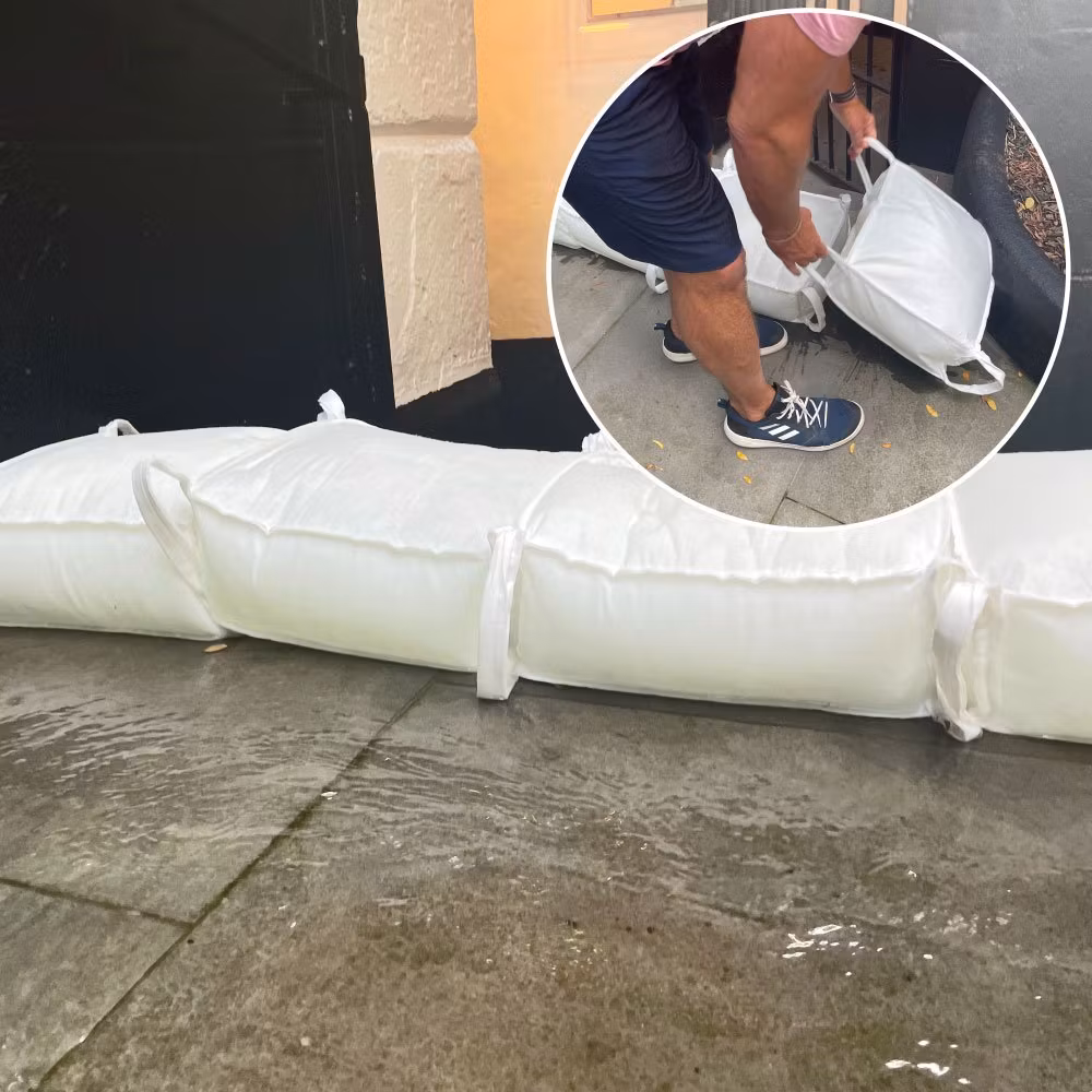 Det som är så smart med dessa säckar är att de är helt platta och ställs ut på platser som du vill skydda mot vatten. Så fort vattnet kommer så absorberar säckarna vattnet och fylls till 200-300 gånger sin egen vikt och samtidigt bildar en barriär mot nytt vatten.
