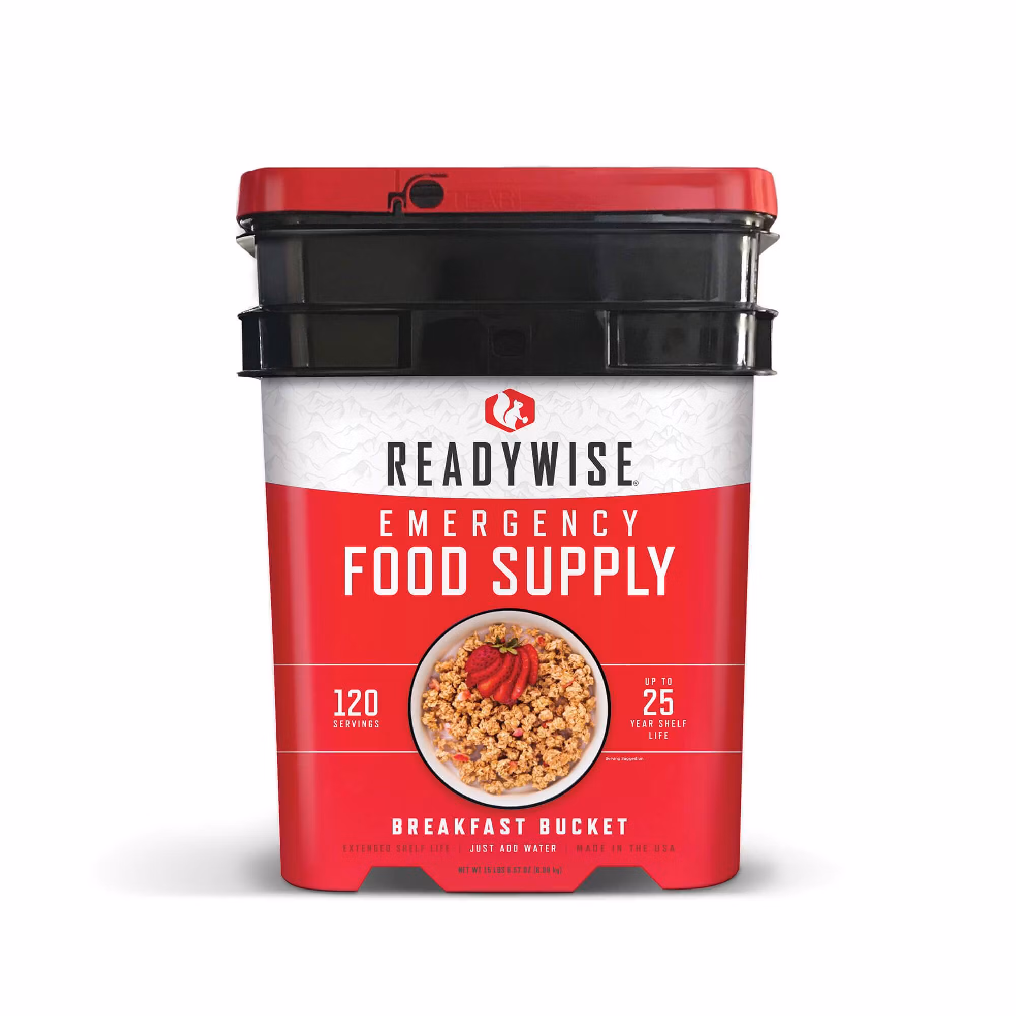 ReadyWise 120 Portionen Frühstückseimer ist Ihre Lösung für eine langfristige Frühstücksvorsorge mit 120 Portionen gefriergetrockneter Mahlzeiten, verpackt in einem praktischen, stapelbaren Eimer. Jeder Beutel enthält 4 Portionen und das Angebot umfasst: