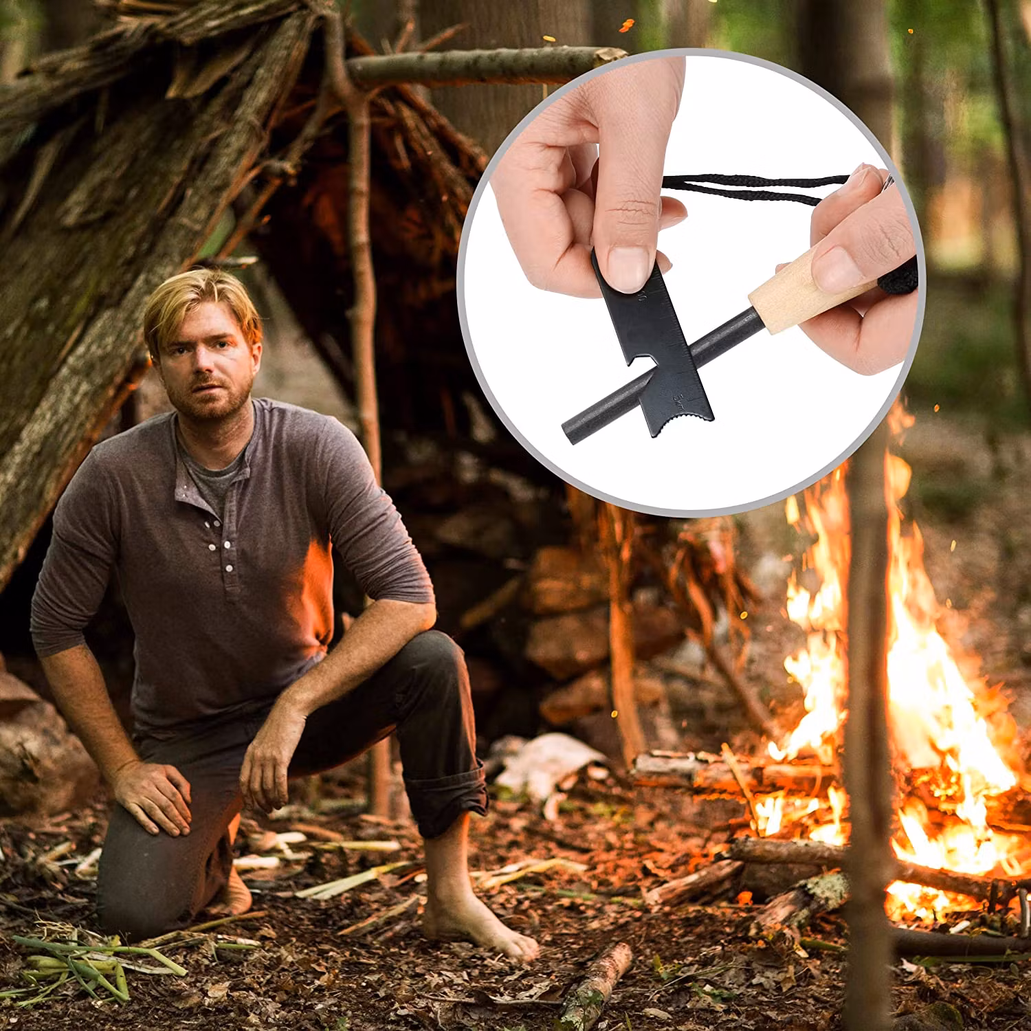 Robuster Feuerstahl mit Holzgriff. Einfach zu bedienen.