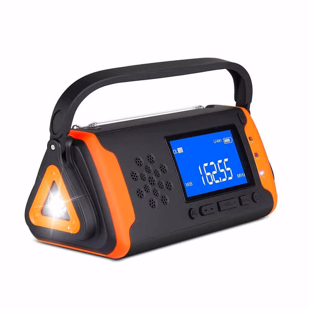 Im Vergleich zu unserem kleineren Kurbelradio hat dieses Modell die doppelte Batteriekapazität. Es ist außerdem mit einem Dynamo, Solarzellen und der Möglichkeit ausgestattet, AAA-Batterien zu verwenden. Eine sichere Wahl in allen Situationen!